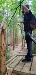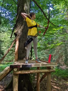 Der Parkour verlief mitten durch den Wald über kleine Bäche. Doch nachdem wir auf ein paar Ziele geschossen hatte, konnte man noch einen anderen Weg nehmen, auf dem sich nur 16 Ziele befanden.