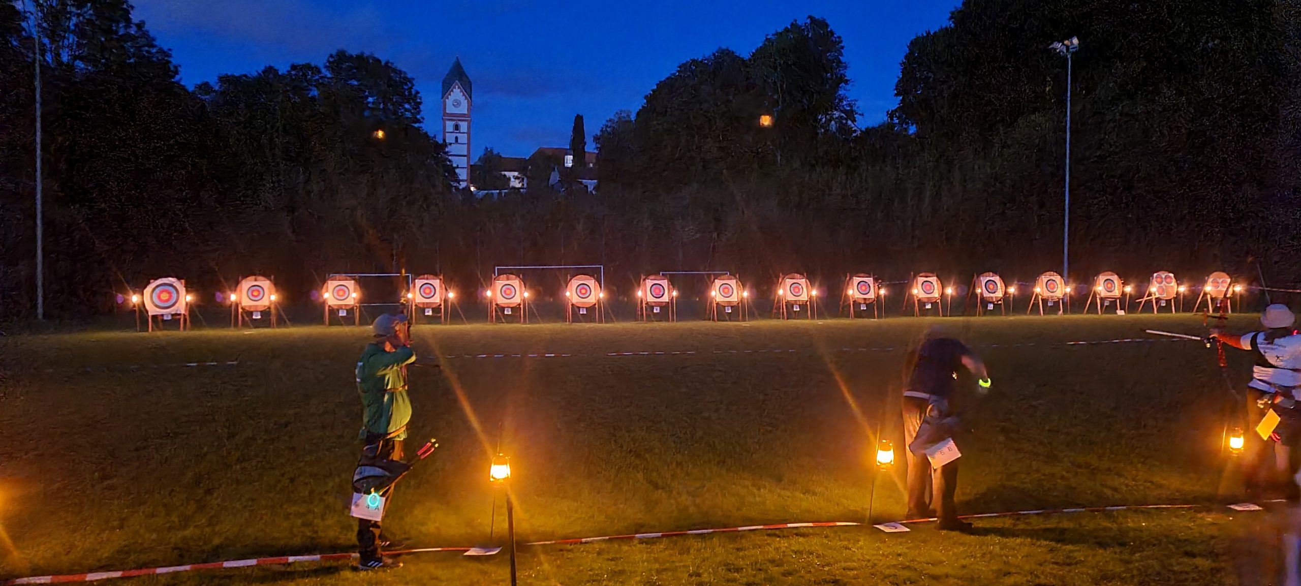 Nach Sonnenuntergang startete der 2. Durchgang und schon das Einnocken der Pfeile stellte so manchen Schützen vor eine Herausforderung und auch das Pfeilesuchen gestaltete sicher etwas schwieriger.