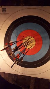 Geschossen wurden 2×30 Pfeile auf 30m – 1. Durchgang im Hellen und 2. Durchgang nach Sonnenuntergang.